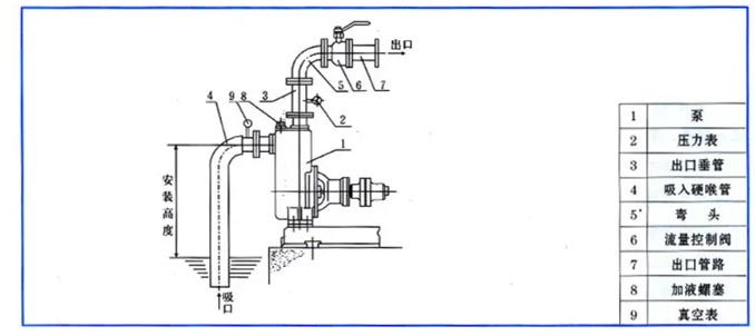 2.為了確保泵體中保存一定的儲存液,可以達到很好的自吸能力與避免機械密封出現干磨,需要確保自吸泵的進口高出泵軸中心線。